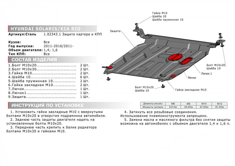Обращаем ваше внимание, на тот факт, что защита имеет форму, соответствующую модели данного автомобиля. Наличие глубокого штампа и лючков для смены фильтров/масла предусмотрено не на всех защитах. Фото служит для визуального восприятия товара.