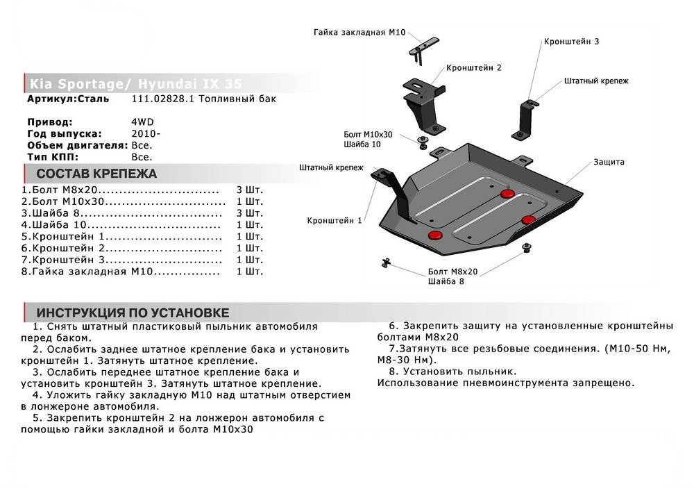 В нашем интернет-магазине можно купить Защиту топливного бака Автоброня для Hyundai ix35, 4WD 2010-2015