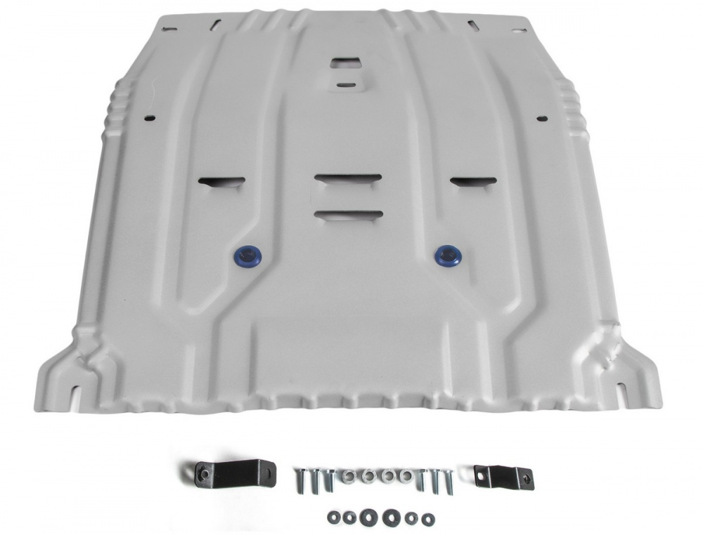 Защита картера и КПП Rival для Hyundai Santa Fe IV (V - 2.2d; 2.4) 2018-н.в./Hyundai Tucson III (V - 1.6; 1.6T (177 л.с.); 2.0; 2.0d) 2015-2018/Hyundai Tucson III рестайлинг (V - 1.6T GDI (177л.с.); 2.0d) 2018-н.в./Kia Sorento Prime III (V - 2.4; 2.2d; 3.3) 2015-2017/Kia Sorento Prime III рестайлинг (V - 2.2d; 2.4) 2018-н.в./Kia Sportage IV (V - 1.6T (177 л.с.); 2.0; 2.0d) 2016-2018/Kia Sportage IV рестайлинг (V - 2.0; 2.0d; 2.4) 2018-н.в., алюминий 4 мм, с крепежом, 333.2375.1