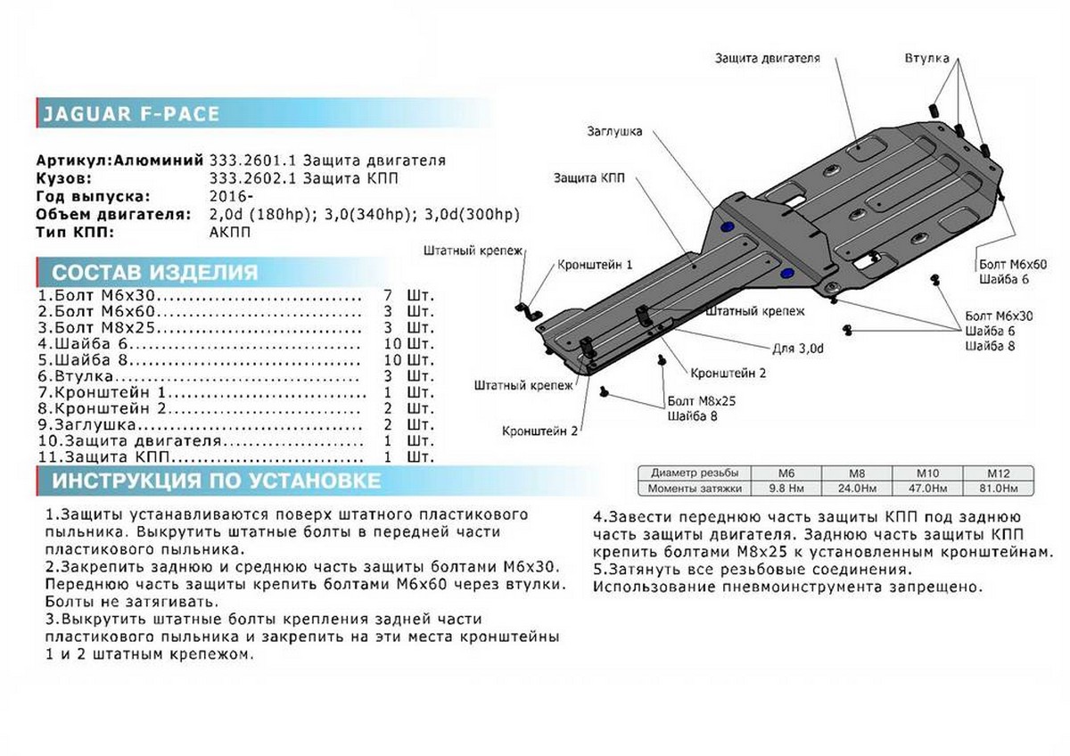 Обращаем ваше внимание, на тот факт, что защита имеет форму, соответствующую модели данного автомобиля. Наличие глубокого штампа и лючков для смены фильтров/масла предусмотрено не на всех защитах. Фото служит для визуального восприятия товара.