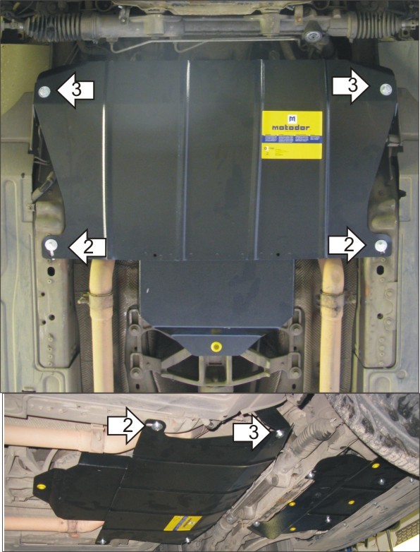 Защита картера двигателя Motodor имеет полимерное порошковое покрытие, позволяющее в огромной степени противостоять агрессивной среде. В комплекте находиться оцинкованный крепеж. Покрытие предохраняет резьбовые соединения от ржавчины, что облегчает демонтаж защиты картера двигателя и после длительной эксплуатации. Защита картера двигателя Motodor устанавливается в штатные места без доработки кузова.