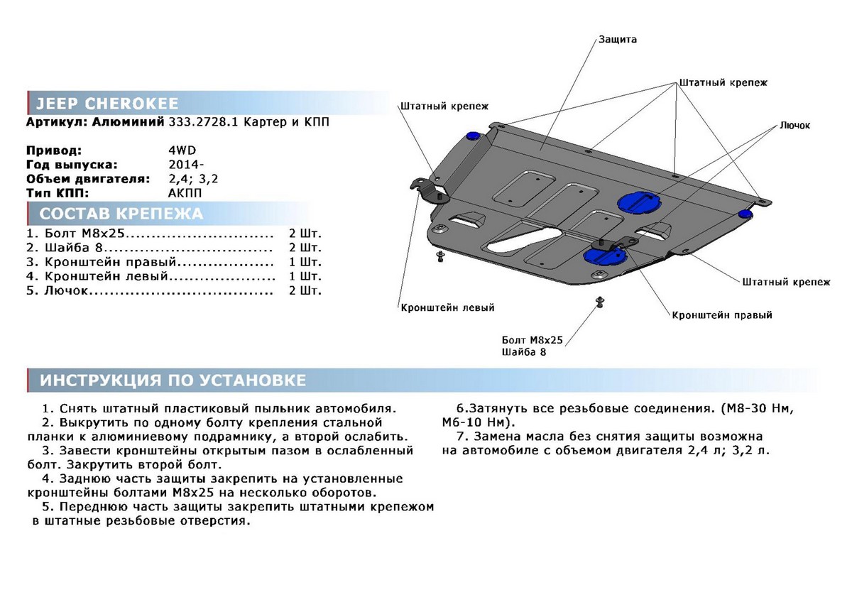 Обращаем ваше внимание, на тот факт, что защита имеет форму, соответствующую модели данного автомобиля. Наличие глубокого штампа и лючков для смены фильтров/масла предусмотрено не на всех защитах. Фото служит для визуального восприятия товара.
