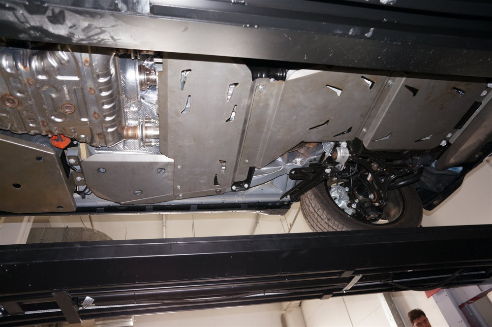 Алюминиевые защиты АВС-дизайн на Jeep Gr. Cherokee (2013-) отличаются высокой жесткостью. При том, что толщина листа алюминия составляет около 5 мм, защита имеет меньший вес, чем стальная такой же толщины.