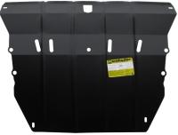 Защита двигателя Motodor для машины KIA Cerato (2003-2008) произведена из качественной горячекатаной стали марки СТ3 толщиной два миллиметра. Защита картера имеет ребра жесткости и вентиляционные отверстия, позволяющие соблюдать температурный режим. В некоторых вариантах защиты предусмотрены отверстия для слива масла и замены фильтров, но при тех.обслуживании рекомендуется снимать защиту картера полностью для осмотра двигателя.