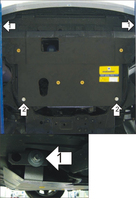Защита картера двигателя Motodor имеет полимерное порошковое покрытие, позволяющее в огромной степени противостоять агрессивной среде. В комплекте находиться оцинкованный крепеж. Покрытие предохраняет резьбовые соединения от ржавчины, что облегчает демонтаж защиты картера двигателя и после длительной эксплуатации. Защита картера двигателя Motodor устанавливается в штатные места без доработки кузова.
