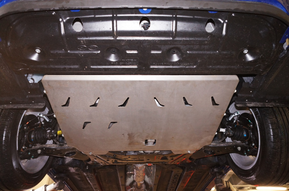 Алюминиевые защиты АВС-дизайн на KIA Optima (2010-2015) отличаются высокой жесткостью. При том, что толщина листа алюминия составляет около 5 мм, защита имеет меньший вес, чем стальная такой же толщины.