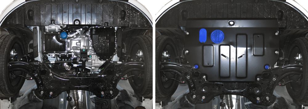 Обращаем ваше внимание, на тот факт, что защита имеет форму, соответствующую модели данного автомобиля. Наличие глубокого штампа и лючков для смены фильтров/масла предусмотрено не на всех защитах. Фото служит для визуального восприятия товара.