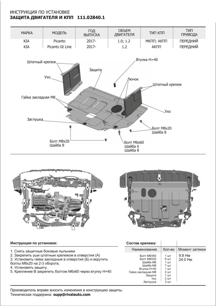 В нашем интернет-магазине можно купить Защиту картера и КПП Автоброня для Kia Picanto 2017-, V - 1.2
