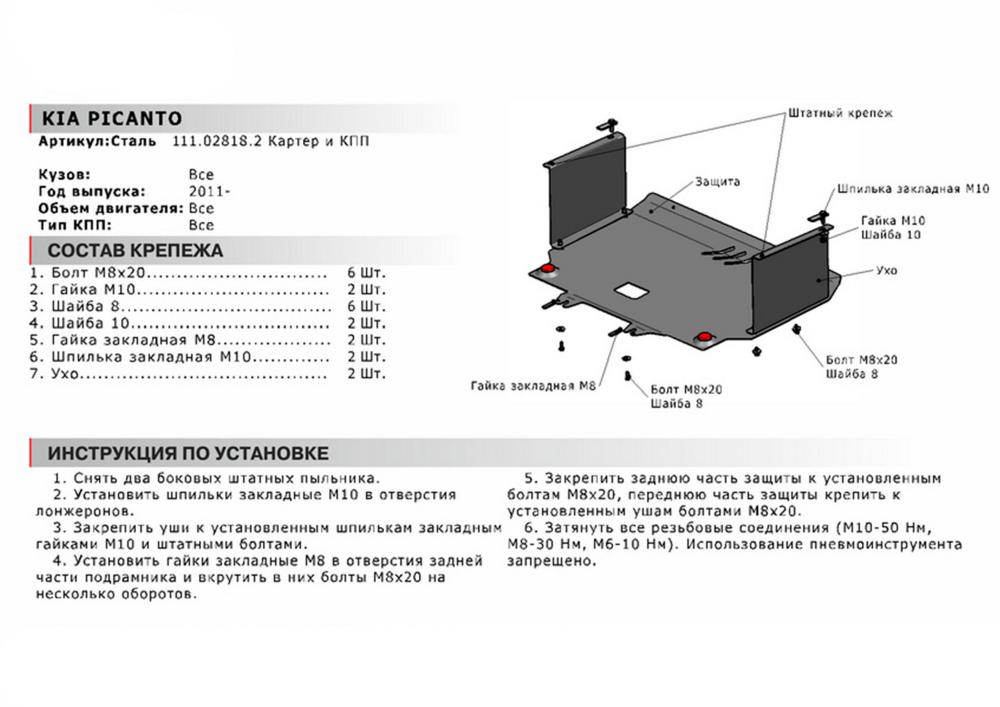 В нашем интернет-магазине можно купить Защиту картера и КПП Автоброня для Kia Picanto 2011-2017