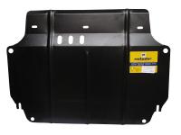 Защита двигателя Motodor для машины KIA Rio (2005-2011) произведена из качественной горячекатаной стали марки СТ3 толщиной два миллиметра. Защита картера имеет ребра жесткости и вентиляционные отверстия, позволяющие соблюдать температурный режим. В некоторых вариантах защиты предусмотрены отверстия для слива масла и замены фильтров, но при тех.обслуживании рекомендуется снимать защиту картера полностью для осмотра двигателя.