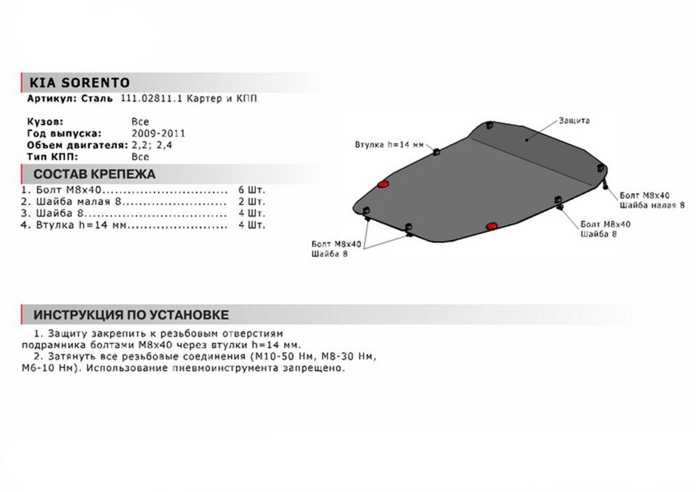 В нашем интернет-магазине можно купить Защиту картера и КПП Автоброня для Kia Sorento, V -2,2D; 2,4 2009-2011