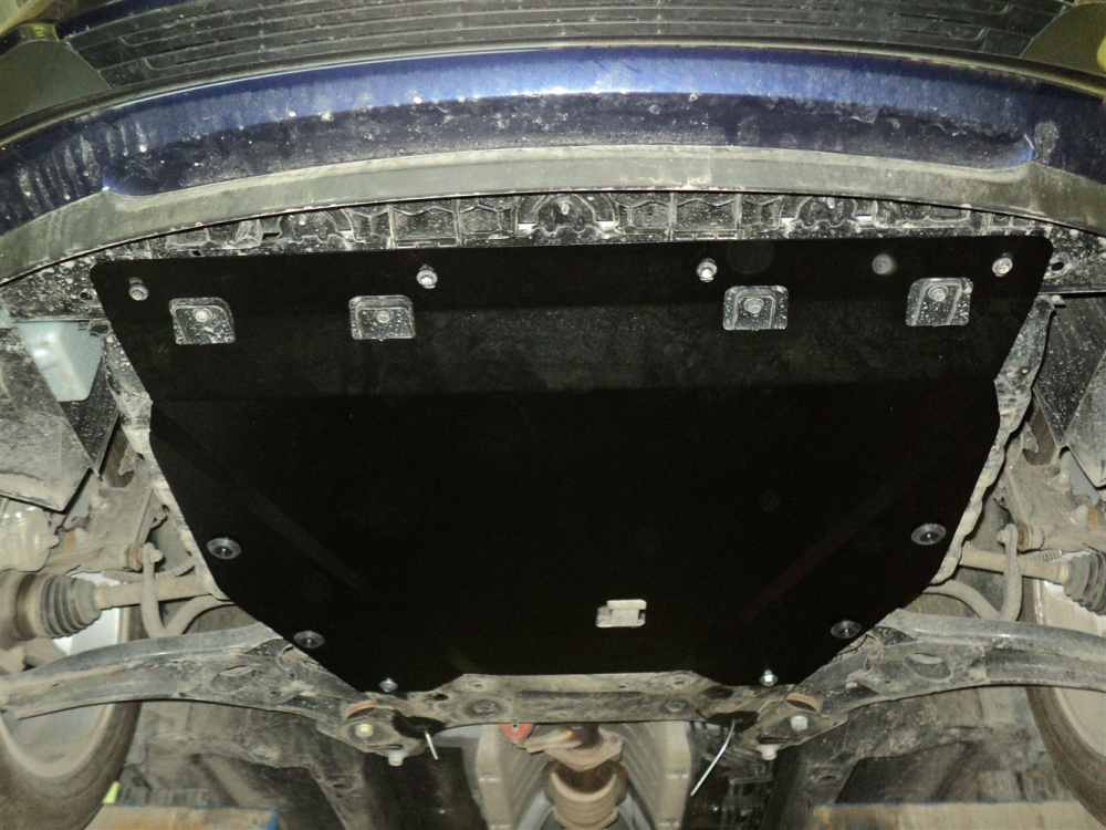 Алюминиевые защиты АВС-дизайн на KIA Venga (2010-2016) отличаются высокой жесткостью. При том, что толщина листа алюминия составляет около 5 мм, защита имеет меньший вес, чем стальная такой же толщины.