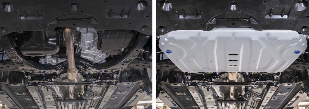 Обращаем ваше внимание, на тот факт, что защита имеет форму, соответствующую модели данного автомобиля. Наличие глубокого штампа и лючков для смены фильтров/масла предусмотрено не на всех защитах. Фото служит для визуального восприятия товара.