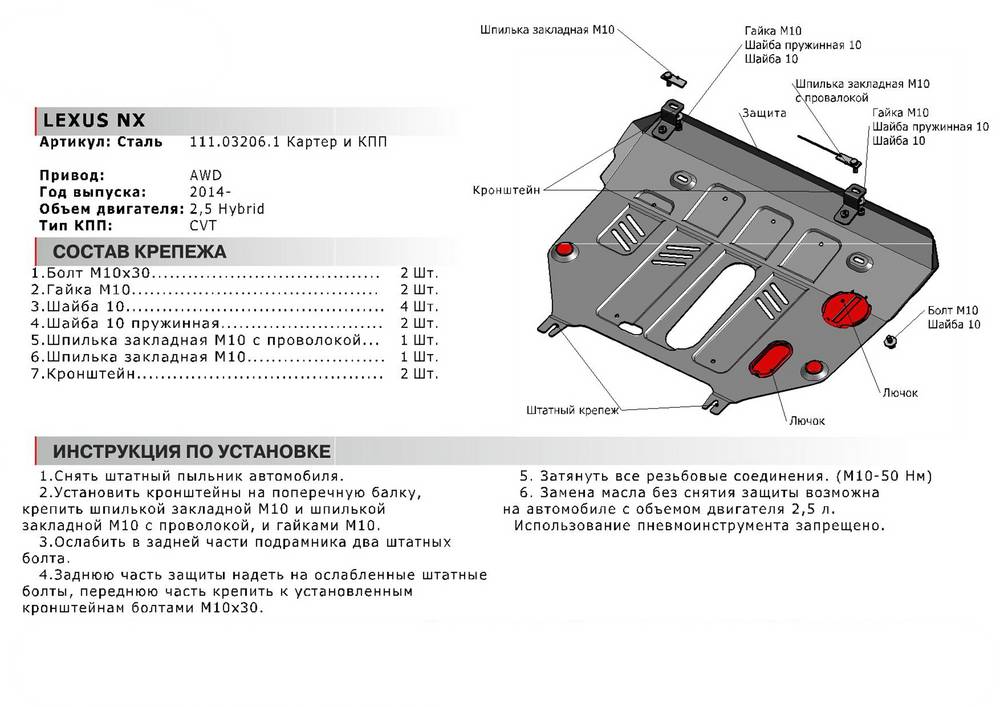 В нашем интернет-магазине можно купить Защиту картера и КПП Автоброня для Lexus NX, 300h AWD V-2,5 Hybrid 2014-