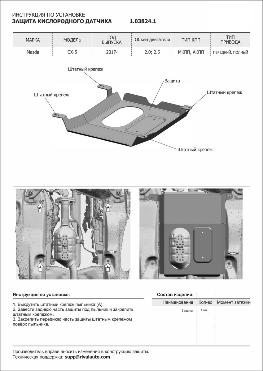 В нашем интернет-магазине можно купить Защиту кислородного датчика Автоброня для Mazda CX-5 2017-