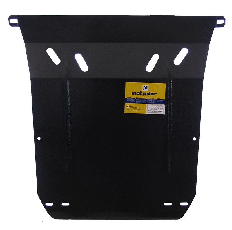 Защита двигателя Motodor для машины Mercedes M (W163) (1998-2005) произведена из качественной горячекатаной стали марки СТ3 толщиной два миллиметра. Защита картера имеет ребра жесткости и вентиляционные отверстия, позволяющие соблюдать температурный режим. В некоторых вариантах защиты предусмотрены отверстия для слива масла и замены фильтров, но при тех.обслуживании рекомендуется снимать защиту картера полностью для осмотра двигателя.