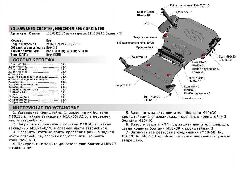 В нашем интернет-магазине можно купить Защиту картера Автоброня для Mercedes Benz Sprinter 2WD, 311CDI; 315CDI; 515CDI, V - 2,1 2009-2013 2013-