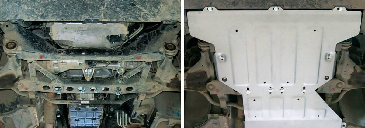 Обращаем ваше внимание, на тот факт, что защита имеет форму, соответствующую модели данного автомобиля. Наличие глубокого штампа и лючков для смены фильтров/масла предусмотрено не на всех защитах. Фото служит для визуального восприятия товара.