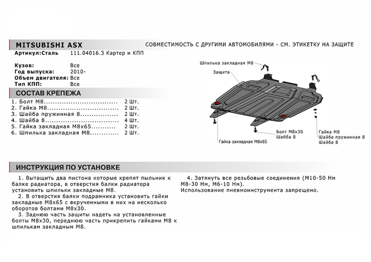 В нашем интернет-магазине можно купить Защиту картера и КПП АвтоБроня (увеличенная) для Mitsubishi ASX 2010-2015 2017-н.в.