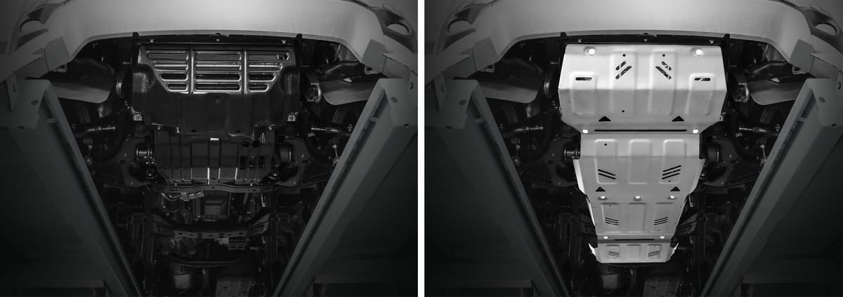Алюминиевые защиты Rival надежно защищают днище вашего автомобиля от повреждений, например при наезде на бордюры, а также выполняют эстетическую функцию при установке на высокие автомобили.