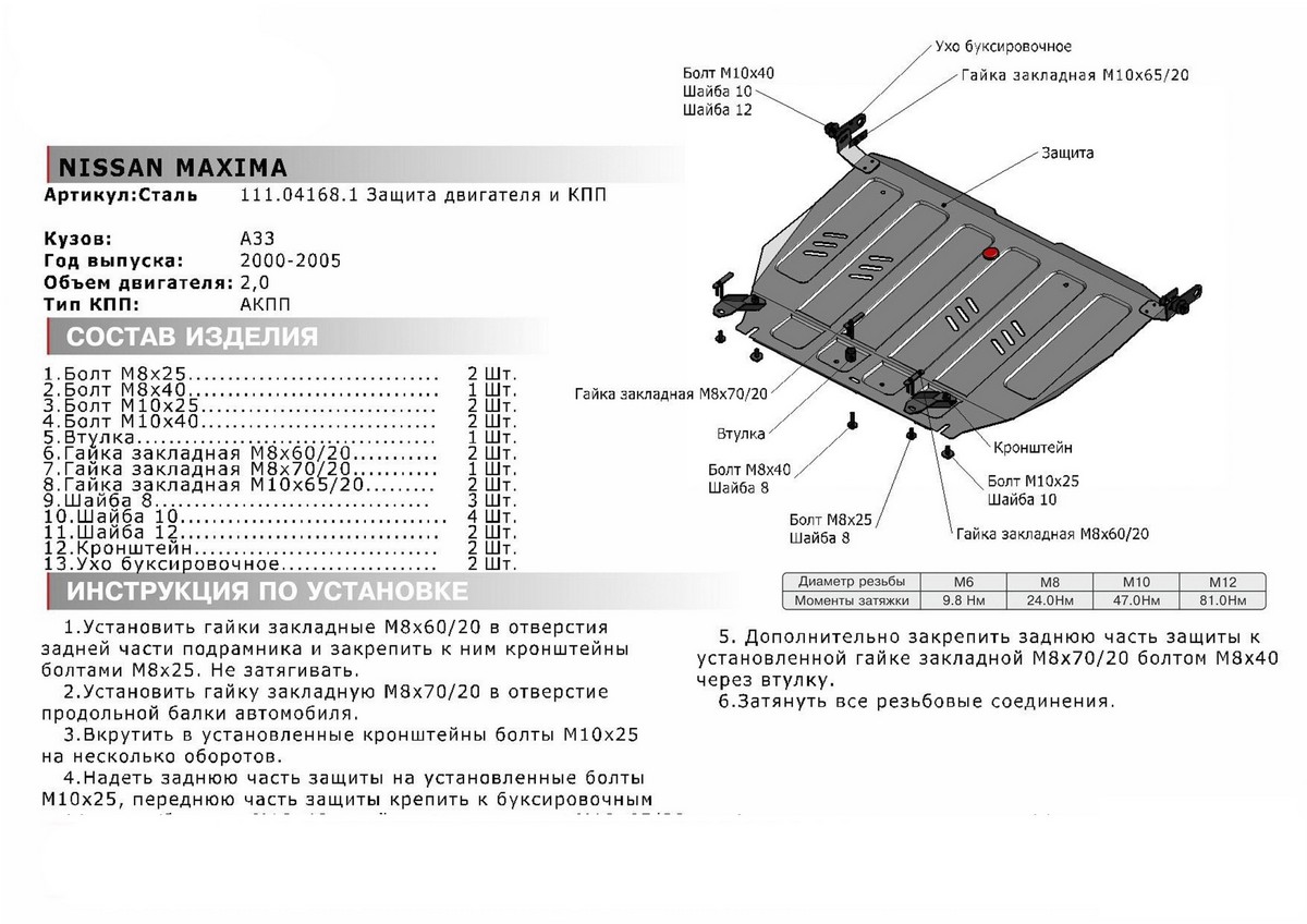 В нашем интернет-магазине можно купить Защиту картера и КПП АвтоБроня для Nissan Maxima АКПП 2000-2005