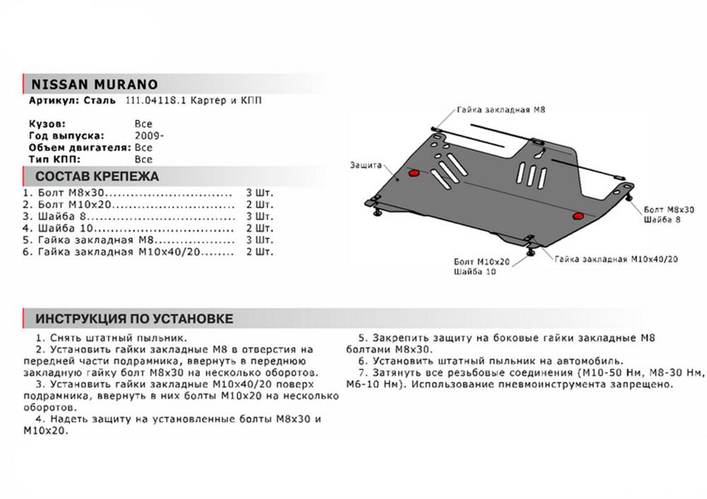 В нашем интернет-магазине можно купить Защиту картера и КПП Автоброня для Nissan Murano 2009-2016