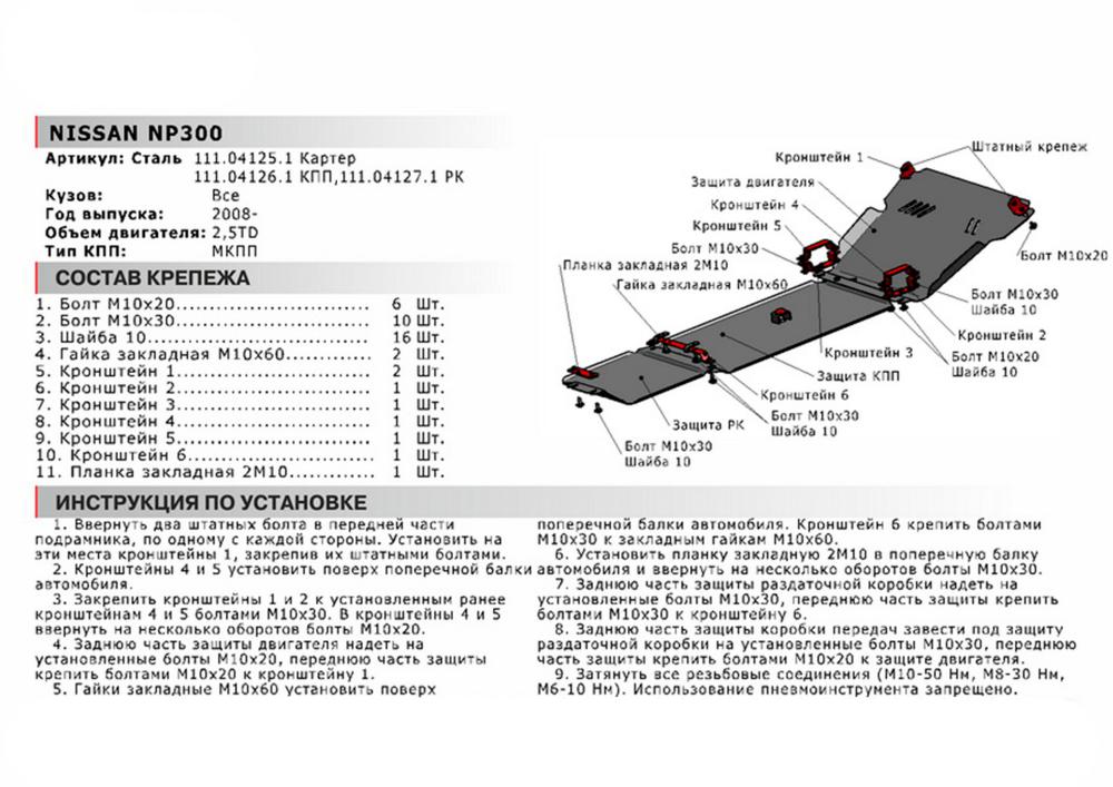 В нашем интернет-магазине можно купить Защиту картера Автоброня для Nissan NP 300, V - 2,5TD 2008-2015