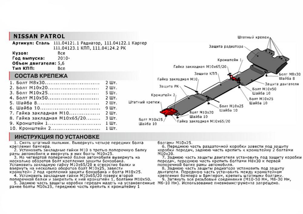 В нашем интернет-магазине можно купить Защиту картера Автоброня для Nissan Patrol, V - 5,6 2010-