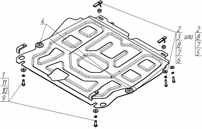 Защита картера двигателя Motodor имеет полимерное порошковое покрытие, позволяющее в огромной степени противостоять агрессивной среде. В комплекте находиться оцинкованный крепеж. Покрытие предохраняет резьбовые соединения от ржавчины, что облегчает демонтаж защиты картера двигателя и после длительной эксплуатации. Защита картера двигателя Motodor устанавливается в штатные места без доработки кузова.