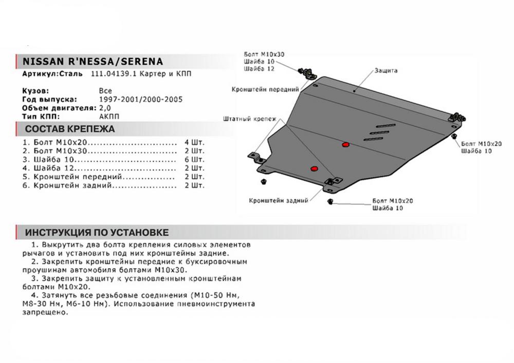 В нашем интернет-магазине можно купить Защиту картера Автоброня для Nissan R'nessa, V-2,0 1997-2000