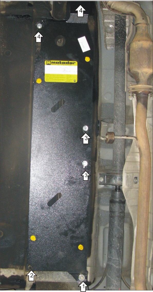 Защита картера двигателя Motodor имеет полимерное порошковое покрытие, позволяющее в огромной степени противостоять агрессивной среде. В комплекте находиться оцинкованный крепеж. Покрытие предохраняет резьбовые соединения от ржавчины, что облегчает демонтаж защиты картера двигателя и после длительной эксплуатации. Защита картера двигателя Motodor устанавливается в штатные места без доработки кузова.