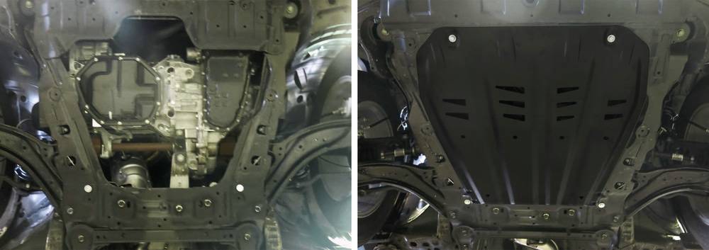 Обращаем ваше внимание, на тот факт, что защита имеет форму, соответствующую модели данного автомобиля. Наличие глубокого штампа и лючков для смены фильтров/масла предусмотрено не на всех защитах. Фото служит для визуального восприятия товара.