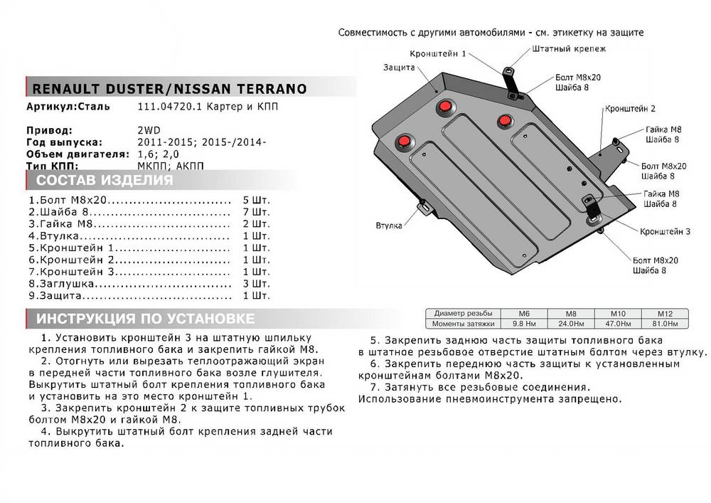 Обращаем ваше внимание, на тот факт, что защита имеет форму, соответствующую модели данного автомобиля. Наличие глубокого штампа и лючков для смены фильтров/масла предусмотрено не на всех защитах. Фото служит для визуального восприятия товара.