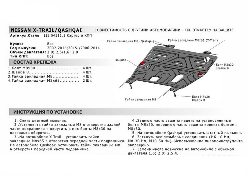 Обращаем ваше внимание, на тот факт, что защита имеет форму, соответствующую модели данного автомобиля. Наличие глубокого штампа и лючков для смены фильтров/масла предусмотрено не на всех защитах. Фото служит для визуального восприятия товара.