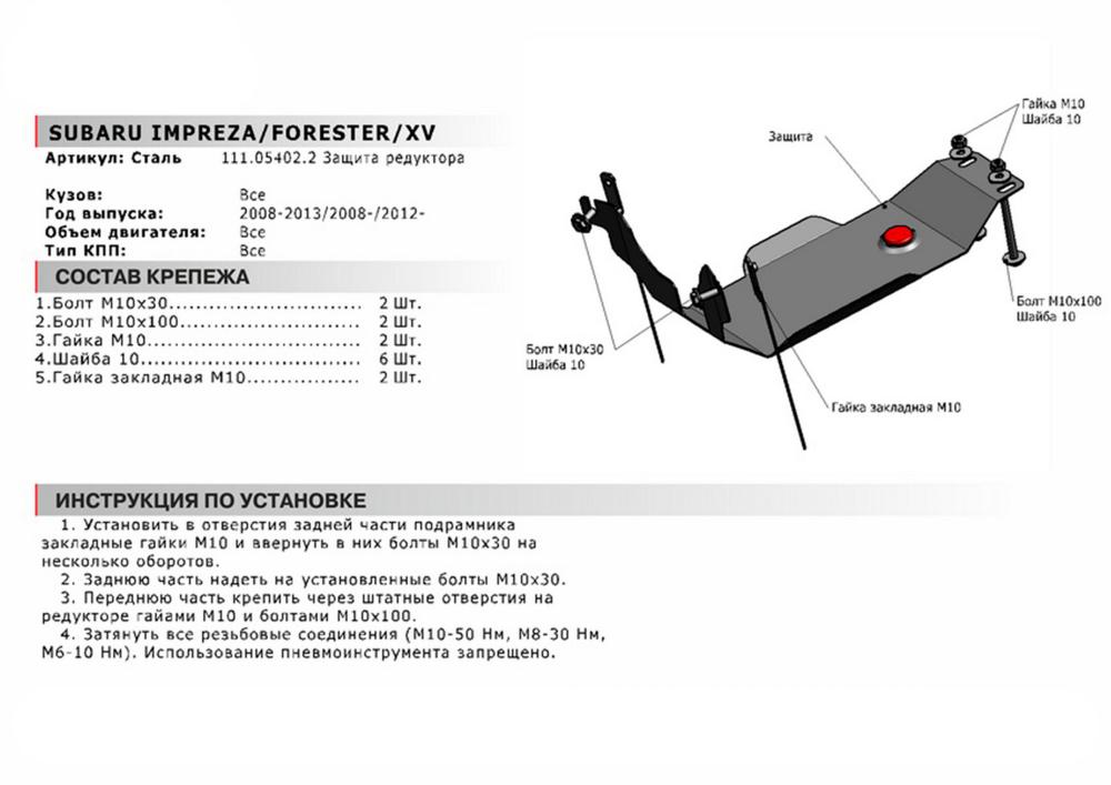 —Защита редуктора Автоброня для Subaru Impreza V-1,5R; 2,0 R; 2,5 WRX; 2,5 STI 2013-