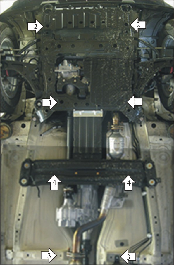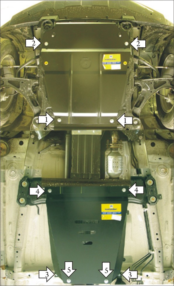 Защита картера двигателя Motodor имеет полимерное порошковое покрытие, позволяющее в огромной степени противостоять агрессивной среде. В комплекте находиться оцинкованный крепеж. Покрытие предохраняет резьбовые соединения от ржавчины, что облегчает демонтаж защиты картера двигателя и после длительной эксплуатации. Защита картера двигателя Motodor устанавливается в штатные места без доработки кузова.
