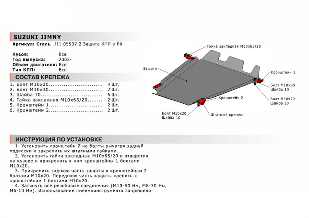 В нашем интернет-магазине можно купить Защиту КПП и РК Автоброня для Suzuki Jimny, V - 1,3 2005-