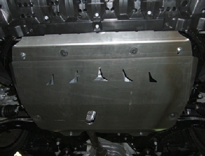 Алюминиевые защиты АВС-дизайн на Suzuki Kizashi (2009-) отличаются высокой жесткостью. При том, что толщина листа алюминия составляет около 5 мм, защита имеет меньший вес, чем стальная такой же толщины.
