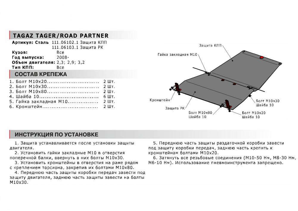 В нашем интернет-магазине можно купить Защиту РК Автоброня для TAGAZ Tager (бензин) V - 2,3; 2,9; 3,2 2008-