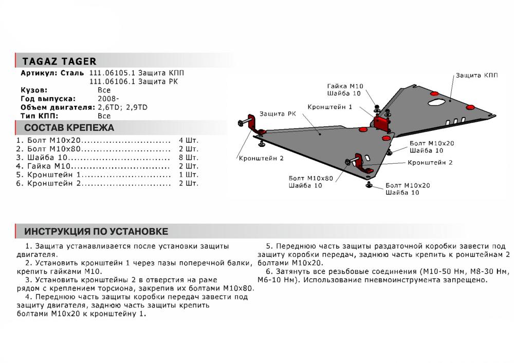В нашем интернет-магазине можно купить Защиту РК Автоброня для TAGAZ Tager (дизель), V - 2,6TD; 2,9TD 2008-