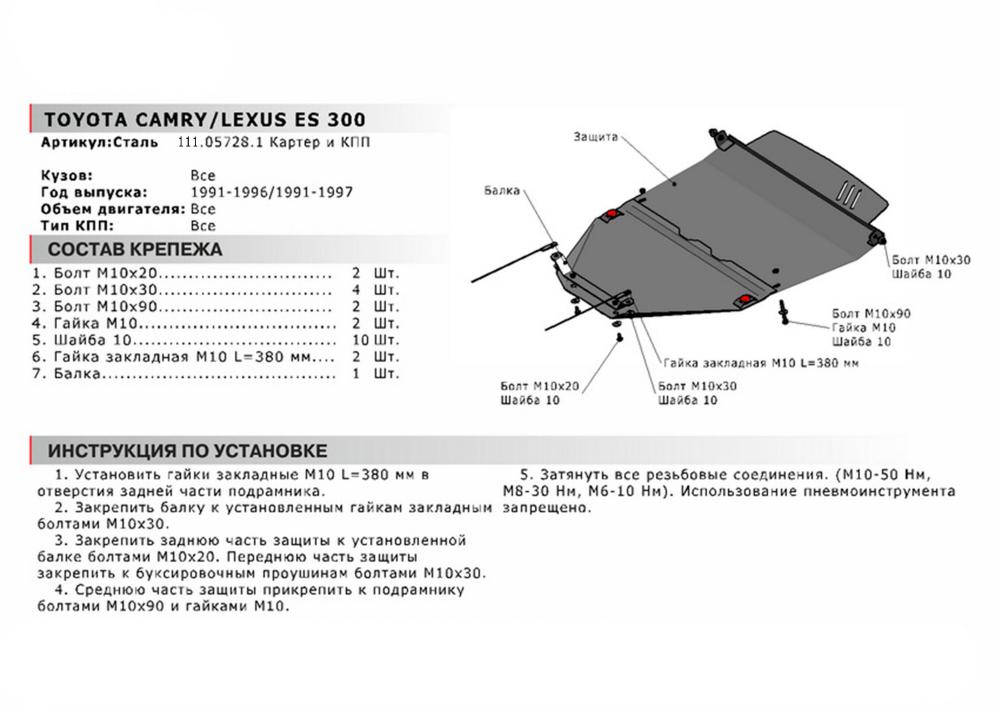 В нашем интернет-магазине можно купить Защиту картера и КПП Автоброня для Toyota Camry 1991-1996