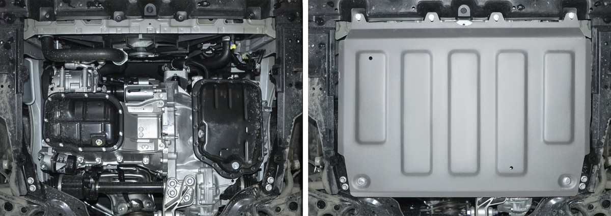 Обращаем ваше внимание, на тот факт, что защита имеет форму, соответствующую модели данного автомобиля. Наличие глубокого штампа и лючков для смены фильтров/масла предусмотрено не на всех защитах. Фото служит для визуального восприятия товара.
