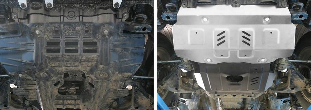 Обращаем ваше внимание, на тот факт, что защита имеет форму, соответствующую модели данного автомобиля. Наличие глубокого штампа и лючков для смены фильтров/масла предусмотрено не на всех защитах. Фото служит для визуального восприятия товара.