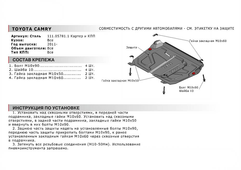 Обращаем ваше внимание, на тот факт, что защита имеет форму, соответствующую модели данного автомобиля. Наличие глубокого штампа и лючков для смены фильтров/масла предусмотрено не на всех защитах. Фото служит для визуального восприятия товара.
