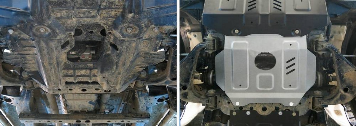 Обращаем ваше внимание, на тот факт, что защита имеет форму, соответствующую модели данного автомобиля. Наличие глубокого штампа и лючков для смены фильтров/масла предусмотрено не на всех защитах. Фото служит для визуального восприятия товара.