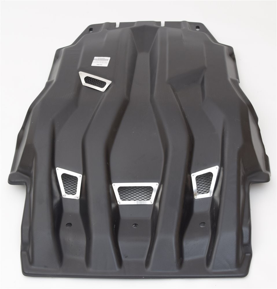 По удельной прочности стеклопластик превосходит сталь в 1,5 раза. При производстве полностью повторяется конфигурация оригинального пыльника автомобиля обеспечивающая максимальную защиту моторного отсека и узлов трансмиссии от попадания влаги и грязи , не нарушает распределения воздушных потоков под днищем автомобиля. Потери клиренса минимальны. Малый вес в сравнение с металлической защитой. Материал не подвержен коррозии, он нейтрален к реагентам, которыми обрабатывают дороги во время гололёда.