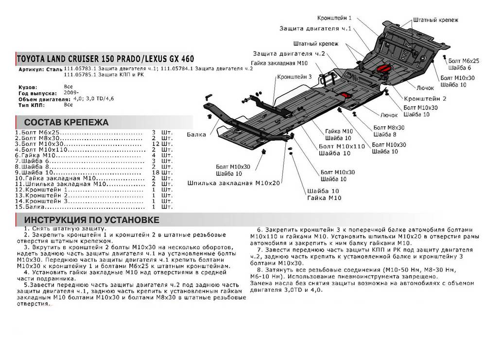 В нашем интернет-магазине можно купить Защиту КПП и РК Автоброня для Toyota LC150, V - 2,7; 3,0TD; 4,0; 2,8TD 2009-