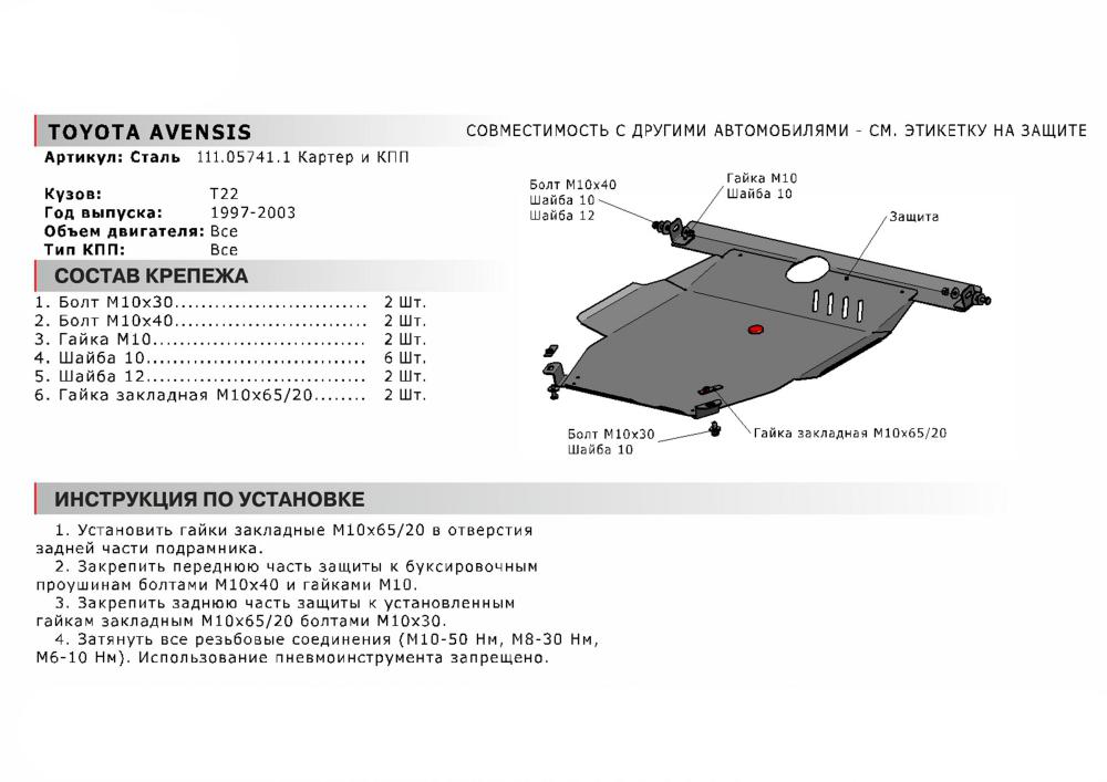 В нашем интернет-магазине можно купить Защиту картера и КПП Автоброня для Toyota Ipsum 4WD V - 2,0 1996-2001