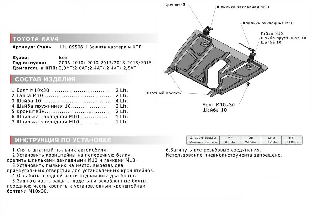 В нашем интернет-магазине можно купить Защиту картера и КПП Автоброня (с вырезом под глушитель) для Toyota RAV4 V-2.0;2.4 2006-2010