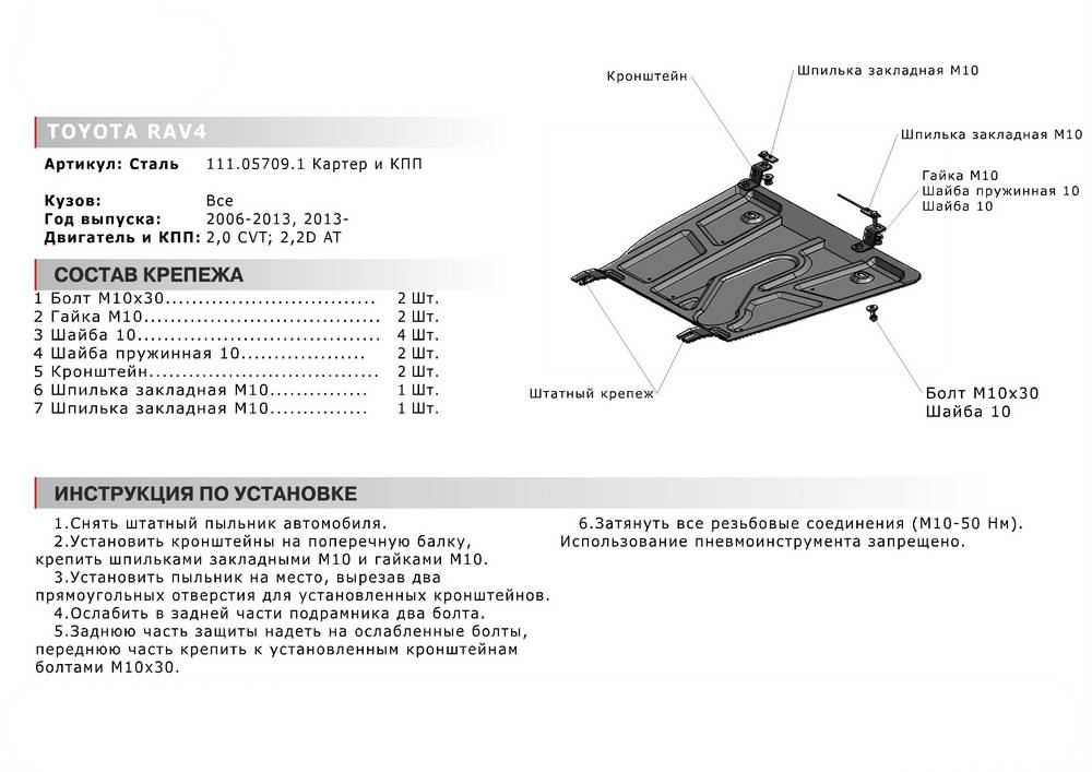В нашем интернет-магазине можно купить Защиту картера и КПП Автоброня для Toyota RAV4 V-2,0 MT; 2,0 КПП 2010-2013
